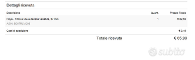 Hoya - Filtro a vite a densità variabile, 67 mm.