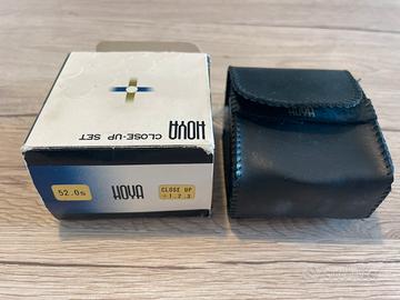 Set di tre lenti close-up HOYA originali, diametro 52 mm, ideali per fotografia macro e ravvicinata. Le lenti permettono di ridurre la distanza minima di messa a fuoco, rendendo possibile fotografare piccoli oggetti o dettagli con maggiore nitidezza.