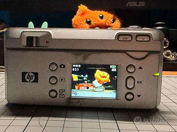 Vendo digicam anni 2000 HP Photosmart 435 perfettamente funzionante, in condizioni estetiche come da foto. La fotocamera ha un sensore CCD da 3.2mp (megapixel) con una resa tipica delle fotocamere compatte y2k, ha un ottimo flash, usa batterie AA (non incluse) e usa schede SD (posso includerne una se serve).