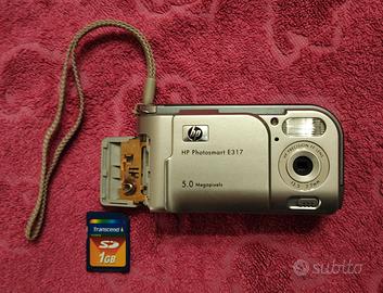 La HP Photosmart E317 è una fotocamera digitale compatta da 5 megapixel, introdotta intorno al 2005, ideale per foto semplici grazie al suo design leggero, al display LCD da 3,8 cm e alla facilità d'uso. È un dispositivo entry-level, spesso riconosciuto per la sua praticità vintage. Flash Off, Auto Flash (predef.), Occhi rossi, Flash On Display LCD TFT LTPS a matrice attiva da 1,5" con retroilluminazione a colori, 130.000 pixel (557 x 234) Opzioni di cattura immagini • Foto (predef.) • Autoscatto: scatto della foto o acquisizione del video dopo un ritardo di 10 secondi • Video: 24 inquadrature al secondo (incluso l'audio), fino a quando la memoria della fotocamera non si esaurisce Registrazione audio • Foto: la durata dei clip audio è di 30 secondi o fino all'esaurimento della memoria • Videoclip: l'audio viene registrato automaticamente Modalità di scatto Auto (predef.), Azione, Panorama, Ritratto, Tramonto Impostazione della qualità delle immagini • 5 MP Ottima • 5 MP (predef.) • 3 MP Il supporto per questa fotocamera, inclusi driver e manuali, è reperibile sul sito di assistenza HP.