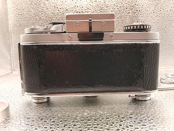La Varex è corredata, oltre dall'obiettivo 50mm in foto, dal mirino a pozzetto originale con vetro smerigliato e della tracolla metallica dell'epoca.
