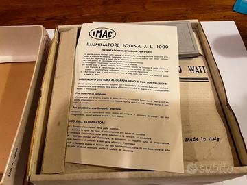 Vendo lampada allo iodio illuminatore vintage 1000 watt ditta Imac , midello JL1000. Veramente come NUOVA, mai adoperata, comoreso della sua scatola di imballaggio e istruzioni. Per veri amatori e collezionisti del cine fitografia vintage. Prezzo 50 euro.