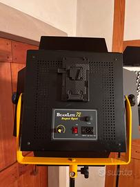 2 pannelli LED 1500W dotati di dimmer per regolazione dell'intensità della luce, angolo di dispersione della luce 60 gradi. Compatibili con batterie V-Lock.