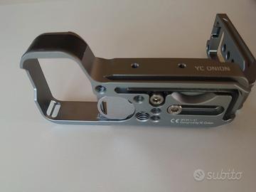 Vendesi bellissima impugnatura in alluminio spazzolato per fotocamera Sony a7 III (alpha 7 - 3). Perfetto grip, come nuovo, resistente e leggero, con chiave esagonale e chiavetta in acciaio lucido integrate nella parte inferiore con clip in calamita, in maniera tale da poter regolare o smontare in qualsiasi momento. Dotata di foro per sostituire la batteria senza dover smontare tutto e similpelle di ricambio nel caso in cui quella in dotazione (attualmente perfetta) dovesse consumarsi. Migliora la presa della fotocamera rendendola più stabile e sicura in mano, regolabile lateralmente, consente di aggiungere flash e microfono, può essere montata sia orizzontalmente sia verticalmente su treppiedi con slitta.