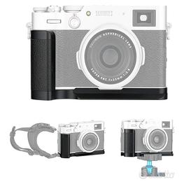 * Materiali: Realizzata in lega di alluminio di alta qualità, con una superficie in pelle in microfibra per una presa antiscivolo e confortevole.* Funzionalità: Migliora la maneggevolezza della fotocamera, offre una presa più sicura durante lo scatto e permette di accedere alla batteria e alla scheda di memoria senza rimuovere l'impugnatura.* Montaggio: Adotta il design della piastra a sgancio rapido Arca-Type per il montaggio su treppiedi compatibili, e include un foro per altoparlante per un facile accesso all'altoparlante della fotocamera.