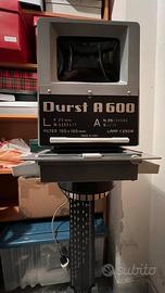 Ingranditore DURST 600A autofocus automatico tarato su obiettivo 80mm , possibilità tramite sistema di taratura ( vedi libretto istruzioni ) fino a lunghezza focale di 105mm.Ottima qualità e precisione ,comprende anche condensatore per foto ritratto a luce diffusa .Ottimo stato !!!