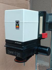 ingranditore Durst C35 e marginatore, usati pochissimo. Visto il costo del lotto è perfetto per chi vuole sperimentare, anche solo una volta, la stampa analogica dei negativi. Altezza asta: 77 cm. Base 43x40 cm. Marginatore, 38x47 cm. Possibile spedizione