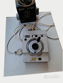 Ingranditore fotografico Durst A 300 con esposimetro Philips PDT 022. Si tratta di un ingranditore professionale. E' in ottimo stato. Si tratta di un ingranditore automatico per il formato 35 mm. Sono comprese bacinelle di sviluppo per carta fino al 40x50. Tank di sviluppo Paterson per negativi 35 mm da una pellicola a 5 pellicole in contemporanea e un marginatore.