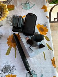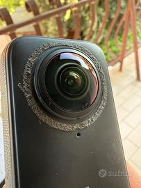 Insta 360 X3, usata pochissimo, completa di - 3 batterie (1 originale + 2 potenziate da 1800mAh - Caricatore per 3 batterie - Adattatore per microfono esterno + plancia di collegamento alla camera - Selfie stick da 3 metri - Copri obiettivo - Custodia morbida - Scatola