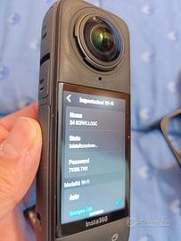 Vendo Insta 360 X4 usata molto poco, con copri lenti intercambiabili, custodia rigida, cavetti, cover anti surriscaldamento, Selfie Stick e treppiede professionale. L'unica cosa che non va e che non riesco a collegarla allo smartphone attraverso l'app Insta 360, il wifi rimane in stato inizializzazione (vedi foto), scarico i video sul computer con il cavo USB.