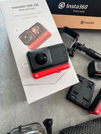 Insta One RS twin edition 4K piu vari accessori Doppia batteria originale Caricatore doppio Copriobbiettivo Bastone invisibile Pellicola per display