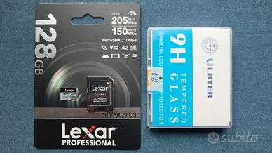 Insieme lascio scheda SD da 128 Gb e pellicole in vetro temperato per protezione schermi.