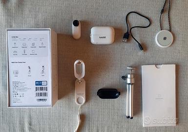 Piccola Videocamera d'azione, 27 gr, impermeabile, stabilizzazione, cattura POV, sensore da 1/2.3", con custodia di ricarica e accessori come nuova, scatola originale e tutti gli accessori