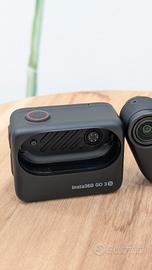 Vendo Insta360 Go3s da 128gb con protezione vetro applicata più una nuova nella sua scatola, protezione antivento, agganci per la pillola con attacco gopro, clip magnetiche orientabili, laccio di sicurezza, cavo di alimentazione e confezione originale. Usata 2 volte, vendo per inutilizzo. Preferibile consegna a mano.