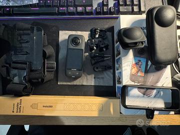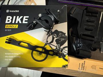 Insta 360 X3 + microsd da 512gb originale, selfie stick e bike pack (pettorina, attacco da manubrio, staffa unicorn), custodia morbida, rigida e in gomma, attacchi e viti, panno di pulizia originale, supporto per tenerla orizzontale.