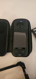 Insta 360 x 3 con case protettivo in gomma, custodia per il trasporto semi rigida, case per chasty montaggio verticale o orizzontale.. In Al. Doppia Batteria originale.. 1 anno, come nuova.. Usata poche volte come visibile dalle immagini