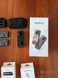 Insta360 X3 perfettamente funzionante in ottime condizioni completa dei seguenti accessori con relative scatole originali: - Dive Case Subacqueo - Invisibile Selfie Stick - Hub di ricarica - 2 batterie extra - Custodia in neoprene - Lens Guards