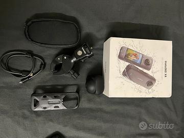 Inoltro do il morsetto insta360, un borsellino, una cover in plastica e una cover para lenti.
