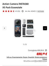La cam e praticamente nuova ! Con scontrino media world e garanzia ! Insta 360 x5 bundle pack essenziale comprende insta selfie stick invisibile , 2 custodie una grande e una piccola due lenti di protezzione un caricatore per batterie ,2x batterie , 1x protezIone in silicone ! Al momento della vendita vi do lo scontrino !tutto il kit costa 700 euro nuovo quindi non fate offerte assurde .!!