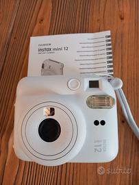 Vendo macchina fotografica Instax mini 12. Flash:Integrato a scatto costante con regolazione automatica della luce. Pellicola:Utilizza Fujifilm Instax Mini. Alimentazione:2 batterie alcaline formatoAA . Nella sua confezione originale (senza batterie e rullino).