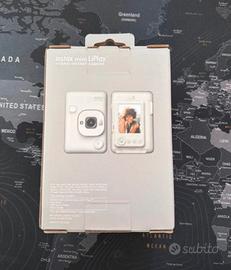 Fujifilm Instax mini Liplay color Misty white. Fotocamera nuova, aperta 1 volta ma mai utilizzata. Scatola compresa di tutti gli accessori e involucri.