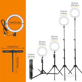 K&F Concept Luce ad anello dimmerabile 25cm treppiede max 183cm flessibili clip Nuovo in confezione originale
