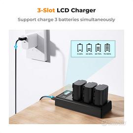 K&F CONCEPT NP-FZ100 Batteria a Tre Slot e Caricatore, 3 * 2280mAh Batteria Compatibile con Sony A7iii, A7iv, A7C, FX3, FX30, A9, A6600, A6700, ZV-E1, ZV-E10ii, Alpha 9, A9S, A7R III, A7R IV, A7RV [Batterie NP-FZ100 di Lunghissima Durata] 3 batterie a7iv da 2280 mAh forniscono più energia per aiutarvi a catturare momenti preziosi in viaggio o all'aperto [Caricabatterie NP FZ100 a 3 Alloggiamenti con Schermo LCD] Caricatore a 3 alloggiamenti può caricare 3 batterie NP-FZ100 contemporaneamente e lo schermo LCD mostra chiaramente lo stato di carica di ciascuna batteria [Ampia Compatibilità] a7iii sono pienamente compatibili con le fotocamere Sony che utilizzano batterie NP-FZ100, adatte a Sony A7iii, A7iv, A7C, ZV-E1, ZV-E10II, FX3, FX30, A9, A6600, A6700, Alpha 9, Alpha 9S, A9S, A7R III, A7R IV, A7R V, A7CR e altri modelli. (Nota: poiché la batteria NP-FZ100 è ancora in fase di aggiornamento, non è ancora compatibile con i modelli Sony FX2) [Metodi di Ricarica Multipli] Caricabatterie NP-FZ100 è dotato di porta Micro USB e porta Type-C (5V/2.1A), che consente la ricarica tramite caricatore da parete, adattatore per auto, alimentazione mobile e altri dispositivi. Attraverso la porta di ricarica Type-C da 5V 2.4A, può caricare completamente 3 batterie in 6 ore [Protezione Multi-Sicurezza] Batteria fx3 è certificata CE/FCC/RoHS/3C con multi-protezione integrata (sovratensione, sovracorrente, cortocircuito, alta temperatura, sovraccarico)