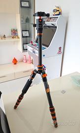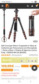 K&F Concept Treppiede in Fibra di Carbonio modello 225C0 nuovo mai utilizzato Caratteristiche * [Leggero e portatile] K&F Concept C225C0+BH-25 (vecchio modello BA225) Tubo per treppiede in fibra di carbonio realizzato in fibra di carbonio di qualità pesa solo 2,20 libbre, misura 14" di lunghezza quando ripiegato, super leggerd e compatto con una capacità di carico fino a 17.62 libbre / 8 kg, che lo rende ideale per la fotografia in interni ed esterni * Conveniente e flessibile Il diametro del tubo da 22 mm, le gambe a 5 sezioni con manopola di bloccaggio a spirale consentono di regolare l'altezza di lavoro da 18,1 "a 60,2" in pochi secondi Le gambe del treppiede possono essere regolate su tre livelli di angolo di apertura per stabilizzarsi su diversi terreni e livelli di inclinazione * [Monopiede staccabile Questo treppiede leggero in fibra di carbonio può essere rapidamente smontato con la vite dell'asse centrale e trasformato in un monopiede, fornendo un modo alternativo di sparare con facilità * [Testa a sfera panoramica a 360 La testa a sfera da 25 mm appositamente progettata pud ruotare di 360° e ottenere angoli liberi, consentendo di ottenere lo scatto perfetto