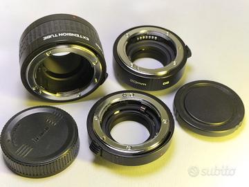 Vendo set Kenko Extension Tube per reflex Nikon, set composto da 3 estensori, 12 - 20 - 36 mm, da usare singoli o in abbinamento per trasformare obiettivi standard in lenti macro, mantenendo le funzionalità di autofocus, diaframma e dati Exif, ideali per close-up e macrofotografia. In vendita su Amazon a 140€. Ottime condizioni