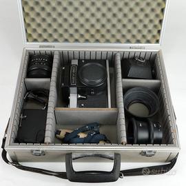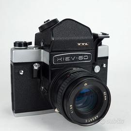 Kit completo Kiev 60 con obiettivo Arsat C 2.8/80mm. La Fotocamera è in condizioni eccellenti, sia estetiche che funzionali, scatta bene su tutti i tempi. Il corpo macchina è stato completamente revisionatao e testato con pellicola, non risulta l' accavallamento dei fotogrammi (ved. foto). Il mirino è limpido senza graffi. La fotocamera è datata 1994 quindi essendo più recente ha già alcune innovazioni e migliorie. la fotocamera è dotata sia di pozzetto che di pentaprisma. Il pentaprisma esposimetrico funziona perfettamente ed è provvisto di batterie nuove, l'alloggiamento delle batterie è già modificato per accoglierle senza l'utilizzo di adattatore, dotato di tappo posteriore di protezione. L'obiettivo è perfetto, messa a fuoco fluida e diaframmi scattanti, senza graffi o funghi, dotato di tappo anteriore e posteriore. Due tubi di prolunga per la macro fotografia inclusi nel kit. Staffetta porta flash e cinghia tracolla originale in perfetto stato. Un esposimetro esterno marca Capital testato e funzionante (venduto senza batteria). Istruzioni originali, e valigetta dedicata. Posso spedire l’oggetto, ma preferisco concordare insieme all’acquirente la modalità più sicura. Rimane comunque preferibile lo scambio a mano su Biella.