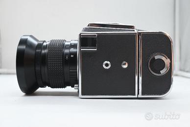 📸 Fotocamera analogica Kiev 88 + obiettivo 45mm VISTO E PIACIUTO Vendo fotocamera analogica medio formato Kiev 88 completa di obiettivo 145mm, ideale per chi vuole avvicinarsi al mondo del 6x6 e ottenere immagini con resa professionale e look vintage. La Kiev 88 è una macchina completamente meccanica, ispirata al sistema Hasselblad, molto apprezzata dagli appassionati per la sua costruzione robusta e per la qualità delle immagini che riesce a produrre su pellicola medio formato. 🔹 Condizioni generali: buone, come da foto 🔹 Funzionamento: meccanica operativa, tempi e avanzamento funzionanti 🔹 Ottica 45mm: in buono stato, lenti pulite senza graffi evidenti o muffe 🔹 Corpo macchina: ben conservato, normali segni d’uso per l’età 📷 Caratteristiche principali: Formato: medio formato 6x6 (negativi quadrati ad alta qualità ) Obiettivo: 45mm, perfetto per ritratti grazie alla prospettiva naturale Sistema modulare con magazzino pellicola intercambiabile Mirino a pozzetto classico Funzionamento completamente manuale, ideale per chi ama la fotografia analogica Questa fotocamera è perfetta sia per chi vuole iniziare con il medio formato, sia per fotografi più esperti o collezionisti. La resa dell’immagine è molto particolare, con grande dettaglio e profondità , tipica delle macchine medio formato. 💼 Ideale per: ritatti fotografia di ritratto progetti artistici e creativi appassionati di analogico collezionisti 📦 Possibilità di spedizione oppure consegna a mano. 💰 Prezzo: 350