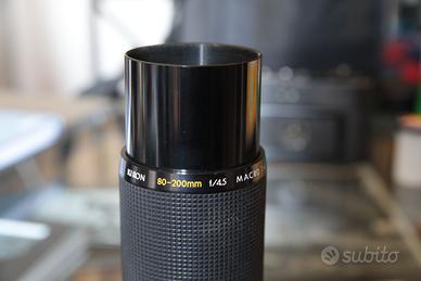 Obiettivo KIRON 80-200f. 4,5 macro 1:4 per Nikon AI. Diametro filtro 55 Lenti multi coated numero matricola 36616648 Chiude fino a diaframma 32 Obiettivo ottimo, stato ottimo , praticamente come nuovo, lenti perfette, diaframmi regolari e precisi. Ottima resa anche su fotocamere digitali e mirrorless.