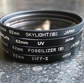 Vendo kit composto da 4 filtri diametro 62mm Così composto: Tamron foggilizer(B) Tamron Diff-II HOYA HMC Super skylight(1b) Marumi UV i filtri sono usati ma non presentano graffi.