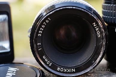 corredo fotografico analogico storico e completo, basato sulla leggendaria Nikon FM (prima versione). Si tratta di un sistema pronto all'uso ("shoot-ready"). Il kit include obiettivi performanti, con alcune note tecniche dettagliate: 1. Corpo Macchina: Nikon FM (Prima Foggia/First Version) Condizioni Meccaniche ed Estetiche: Eccellenti (come da foto). La meccanica è fluida, i tempi di scatto sono precisi. La macchina funziona e continuerò ad usarla fintanto che non verrà venduta. Esposimetro: Perfettamente funzionante. Note: Vengono fornite batterie nuove e incluse nell'offerta. 2. Obiettivi a Focale Fissa (Nikon F-Mount): Nikkor 50mm f/2: Lenti in ottimo stato, senza funghi né aloni (haze). La ghiera di messa a fuoco e diaframmi sono fluide. Nota Cosmetica: La ghiera porta filtri anteriore è scheggiata, verrà venduto con filtro di protezione già installato per ovviare. L'obiettivo è pienamente funzionante. Nikkor 135mm f/2.8: Ottica da ritratto luminosa. Lenti perfette, cristalline. Messa a fuoco fluida. Nota Tecnica: Il meccanismo del diaframma necessita di pulizia (olio sulle lamelle). Le aperture da f/11 in su sono lente nella chiusura allo scatto. Nikkor Serie E 100mm f/2.8: Considerato tra i 100mm di qualità più compatti e leggeri mai prodotti. Lenti perfette, condizioni estetiche eccellenti. Un gioiello di portabilità e nitidezza. Vivitar Series 1 28-90mm f/2.8-3.5 VMC (Macro Focusing Zoom): Per le focali mancanti dal grandangolo al medio-tele. Ottime condizioni generali. 4. Accessori Inclusi: Piastra con Impugnatura a L (L-Grip) in simil-legno, migliora drasticamente l'ergonomia. (Non presente nelle foto dell'annuncio). Due unità flash vintage in regalo. #nikon #nikonfm #analogica #35mm #vintagecamera #fotografiaanalogica #nikkor #macchinafotografica #rullino #pellicola #filmcamera #vintage #fotografia #analogic #vivitar