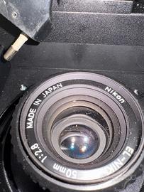 Kit composto da ingranditore con obiettivo Nikon 50 Ml, tubo per sviluppo rullini, timer, contenitori graduati, pinze , vaschette, lampadina camera oscura, filtri colorati ,manicotto per lavorare al buio