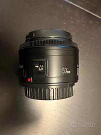 Obiettivo Canon EF 50mm f/1.8 STM (stabilizzato, autofocus veloce) – ideale per ritratti e scatti luminosi.