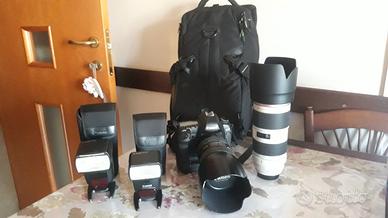 Canon 5d Mark 2 PERFETTA con 24/70 e 70/200 f2.8, battery grip, 2 flash,treppiedi e zaino.