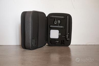 Usato pochissimo, pari al nuovo, completo di valigetta originale, luci LED, microfono, impugnature, supporto e accessori come da foto.