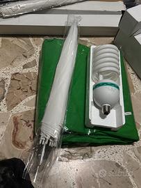 kit di illuminazione per studio fotografico • Il kit include pali e supporti, ombrelli,lampade, stativi fondale verde , morsetti e sacca da trasporto.