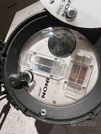 Vendo set completo per fotografia subacquea professionale, ideale per macro e grandangolo. Tutto il materiale è stato testato, è perfettamente funzionante e in ottime condizioni estetiche. Il kit include: • Flash INON Z-220: Potente (Numero Guida 22), dotato di Puntatore LASER rosso (Classe 3A) per un puntamento perfetto del soggetto. Vano batterie impeccabile, guarnizioni (O-ring) originali integre. Funziona con 4 comuni pile AA. • Cavo Sincro Elettrico: Tipo Nikonos a 5 pin, testato per continuità del segnale (scatto garantito). • Sistema di Bracci in Alluminio: 2 braccetti da 20cm con sfere terminali da 1 pollice (standard). • 3 Morsetti (Clamp): In alluminio anodizzato per la massima articolazione del flash. Stato: Usato con cura, sciacquato sempre in acqua dolce. I contatti elettrici sono puliti e privi di ossidazione. Pronto all'immersione.