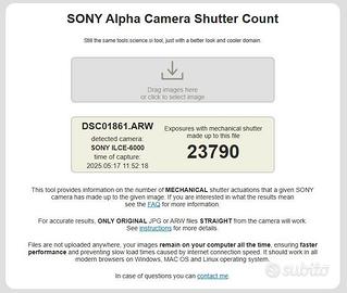 Il Kit comprende: - Corpo Sony α6000: Sensore immacolato, 24MP, autofocus rapido. Con borsa Sony a tracolla in stato perfetto. - Lente Sony G 18-105mm f/4 PZ OSS: Ottica semiprofessionale. FULL SET (scatola, paraluce originale sigillato, manuali). - Lente Sony 55-210mm f/4.5-6.3 OSS: Teleobiettivo stabilizzato per scatti a distanza. - Lente Sony 16-50mm PZ OSS: Obiettivo pancake compatto per uso quotidiano. - Gimbal DJI Ronin-SC Pro Combo: Stabilizzatore a 3 assi con Focus Wheel e motore focus (ancora pellicolato). Custodia rigida originale inclusa. Punti di forza: - Affidabilità: Solo 1/4 della vita utile dell'otturatore utilizzata. - Versatilità: Copertura focale totale (16mm-210mm) + setup video professionale stabilizzato. Cura: Lente G completa di tutto, focus gimbal mai usato.