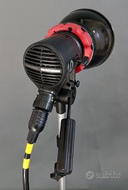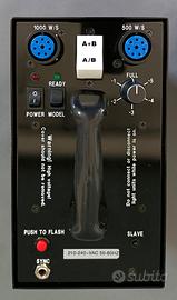 2 uscite per le teste Flash con potenza che può essere suddivisa in modo asimmetrico: 1000 e 500 watt/secondo.
