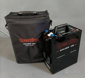 Generatore Flash a Batteria Speedotron Explorer 1500 watt + Testa Speedotron Flash 202VF 2400 Watt/secondo con riflettore da 7" e tubo flash con correzione UV. Copertura variabile da stretta a grandangolare con tutti i riflettori e gli accessori Black Line Speedotron.