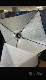 Sono inclusi nel kit: (4) Light Stand 200cm + (2) Supporto Staffa per Lampadina Singola + (4) 45W Bulbo CFL Luce Naturale + (2)84cm Ombrello + (2) 60x60cm Softbox + (1) 1.8x2.8m Fondale in Mussola (Nero/Bianco/Verde) + (6) Clip per Fondale + (1) Sistema di Supporto per Sfondo 2.6x3m + (1) Borsone per Sistema di Supporto + (1) Borsone per Kit di Illuminazione (4) Cavalletto 200cm: con la base robusta e sicura a 3 piedi, riesce a sostenere i lavori pesanti. Grazie alla serratura rapida ad azione singola, è possibile regolare l’altezza in modo preciso e veloce. (2) Supporto Staffa per Lampadina Singola: permette di montare una lampadina e un ombrello sul cavalletto per l’illuminazione. (2) Ombrello Bianco Traslucido 84cm: può ammorbidire, amplificare e diffondere l’emissione luminosa della fonte di luce a tungsteno o di flash da studio. (4) 45W Bulbo CFL Luce Naturale: l’output è equivalente a quello di un bulbo regolare 200W a incandescenza. La lampadina fluorescente a spirale da 5500K può generare una luce simile a quella naturale solare ed illuminare gli oggetti per una vista più nitida. È un prodotto ottimo per illuminazione fotografica. (2) Softbox 60x60cm: diffonde la luce fornendo un’illuminazione perfetta e uniforme. Mediante l’attacco E27, si può direttamente fissare un faro luminoso, una lampadina fluorescente o un slave flash per provvedere illuminazione. (1) 1.8x2.8m Fondale in Mussola (Nero/Bianco/Verde) + (6) Clip per Fondale + (1) 2.6x3m Sistema di Supporto per Sfondo: questa combinazione è ideale per televisione, riproduzioni video e fotografia digitale. (1) Borsone per Sistema di Supporto + (1) Borsone per Kit di Illuminazione: sono idonee per trasportare i cavalletti, gli ombrelli e gli altri accessori.
