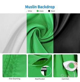 Kit completo di illuminazione e fondale neewer, 2 softbox 2 ombrelli e borsone per contenere illuminazione, struttura fondali con 3 teli di fondali piu morsetti per i teli e borsone per fondale