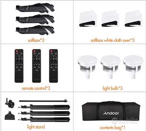 Kit Illuminazione Fotografica Professionale Andoer - Perfetto per Studio e Ritratto. Prodotto come nuovo, aperto SOLO per le prove !