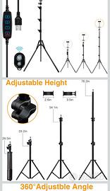 Come da foto, treppiede regolabile in altezza e anello regolabile a 360o