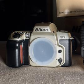 VendoNikon F60 a pellicola (35mm), con corpo macchina edue obiettivi originali Nikon.