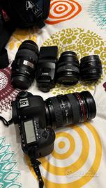 Vendo per inulilizzo ottimo kit con Canon 3D MarkIII, ob 24-70 F2.8L, zoom 75-300, ob 24-85 corto, ob 35 F2, due flash, borse, treppiede manfrotto nuovo MKBFRA-BH
