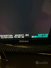 Vendo kit fotografico semi-professionale in condizioni eccellenti, con soli 9200 scatti (utilizzo davvero minimo). ✔️ Corpo macchina perfettamente funzionante ✔️ Sempre tenuta con cura ✔️ Completa di scatola originale, caricabatterie, batteria, libretto e fattura 🔎 Inclusi nel kit: * Obiettivo Nikon 35mm f/1.8 → NUOVO, mai utilizzato * Obiettivo grandangolare 10-20mm → perfetto per paesaggi, architettura e foto con ampia prospettiva 📸 Il grandangolo permette di catturare scene molto ampie e creare effetti di profondità e prospettiva unici, ideale anche per spazi stretti o panorami. (Nikon) 📷 Fotocamera da 24MP, qualità elevata, ideale per chi vuole fare un salto di livello. 💼 Perfetta per: * fotografia artistica * ritratti * street ⚠️ Vendo solo in kit completo, non separatamente 💰 Prezzo: 680€ 📍 Consegna a mano